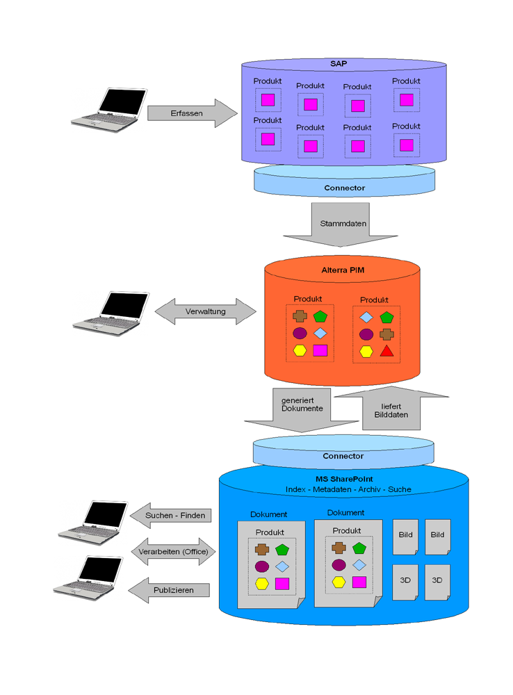 Abbildung: Product Information Lifecyle - SAP - Alterra PIM - MS SharePoint